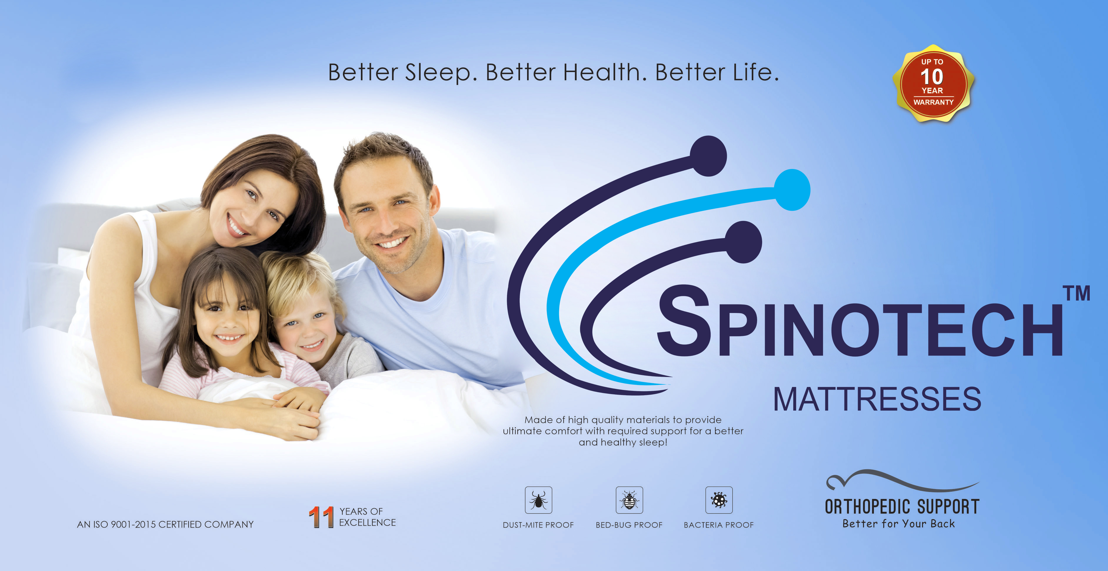 Spinotech Mattress was started by founder Madhusudan gupta in a quest to deliver perfect sleeping solutions to all Indians. His dream became his ambition and soon he was able to manufacture mattresses with advanced machinery that was imported to India for the first time. Having an experience of more than 20 years, Spinotech Mattress has made a benchmark in the industry by serving more than 1 million satisfied customers. And for us, it’s not the end, it’s just a new beginning.